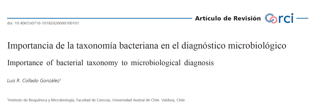 Febrero 2026. Con la finalidad de contribuir con la formación continua de profesionales de la salud, hemos publicado un artículo sobre conceptos de taxonomía bacteriana utilizados en el proceso de diagnóstico microbiológico en la Revista Chilena de Infectología. PDF