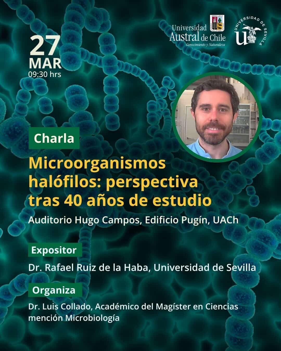 Marzo 2026. Comenzando el año académico hemos recibido la visita del Dr. Rafael Ruiz de la Haba, académico de la Facultad de Farmacia de la Universidad de Sevilla. Durante su estadía, además de realizar un taller de taxogenómica bacteriana, Rafael dicto una conferencia sobre su investigación en microorganismos halófilos.